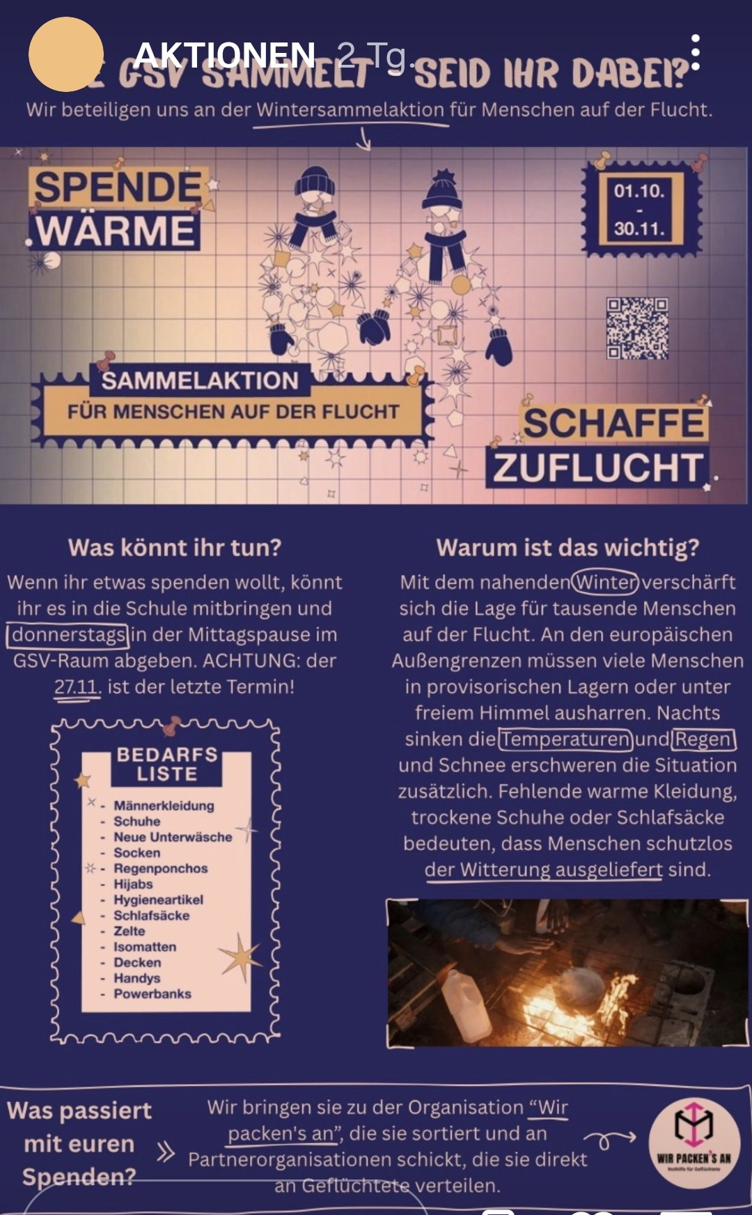 Abgabemöglichkeit immer donnerstags in der Mittagspause im GSV-Raum