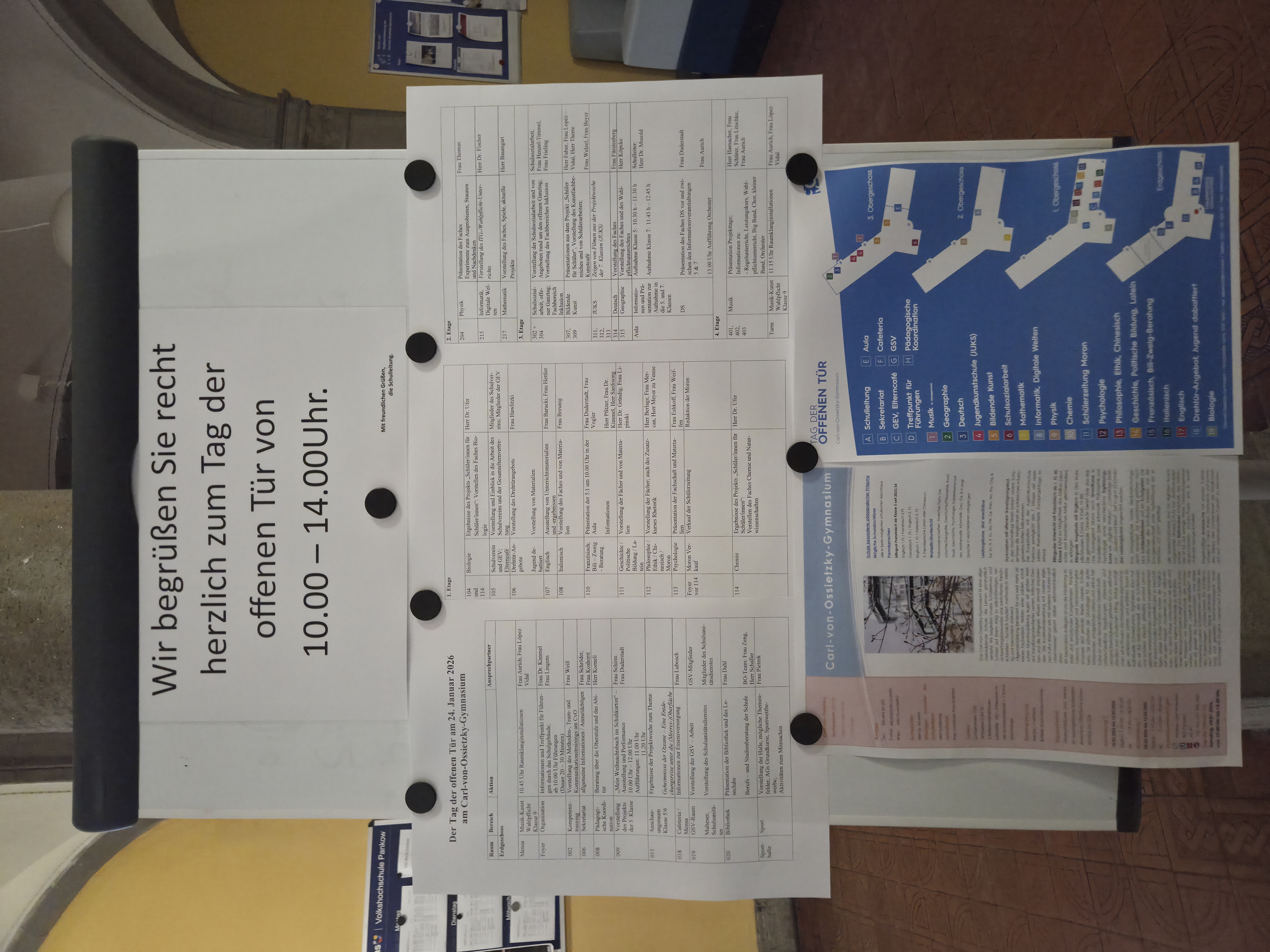 Am Samstag, dem 24.01.26 waren interessierte Schüler:innen und deren Familien eingeladen, sich das Carl-von-Ossietzky-Gymnasium von innen anzuschauen und sich darüber zu informieren, was bei uns alles gelernt und erlebt werden kann. Von 10 und 14 Uhr präsentierten sich die Fachschaften, es wurden Schüler:innen-Produkte ausgestellt, der Schulleiter Herr Dr. Musold informierte über die Aufnahme-Modalitäten und es gab Speis und Trank und Musik.