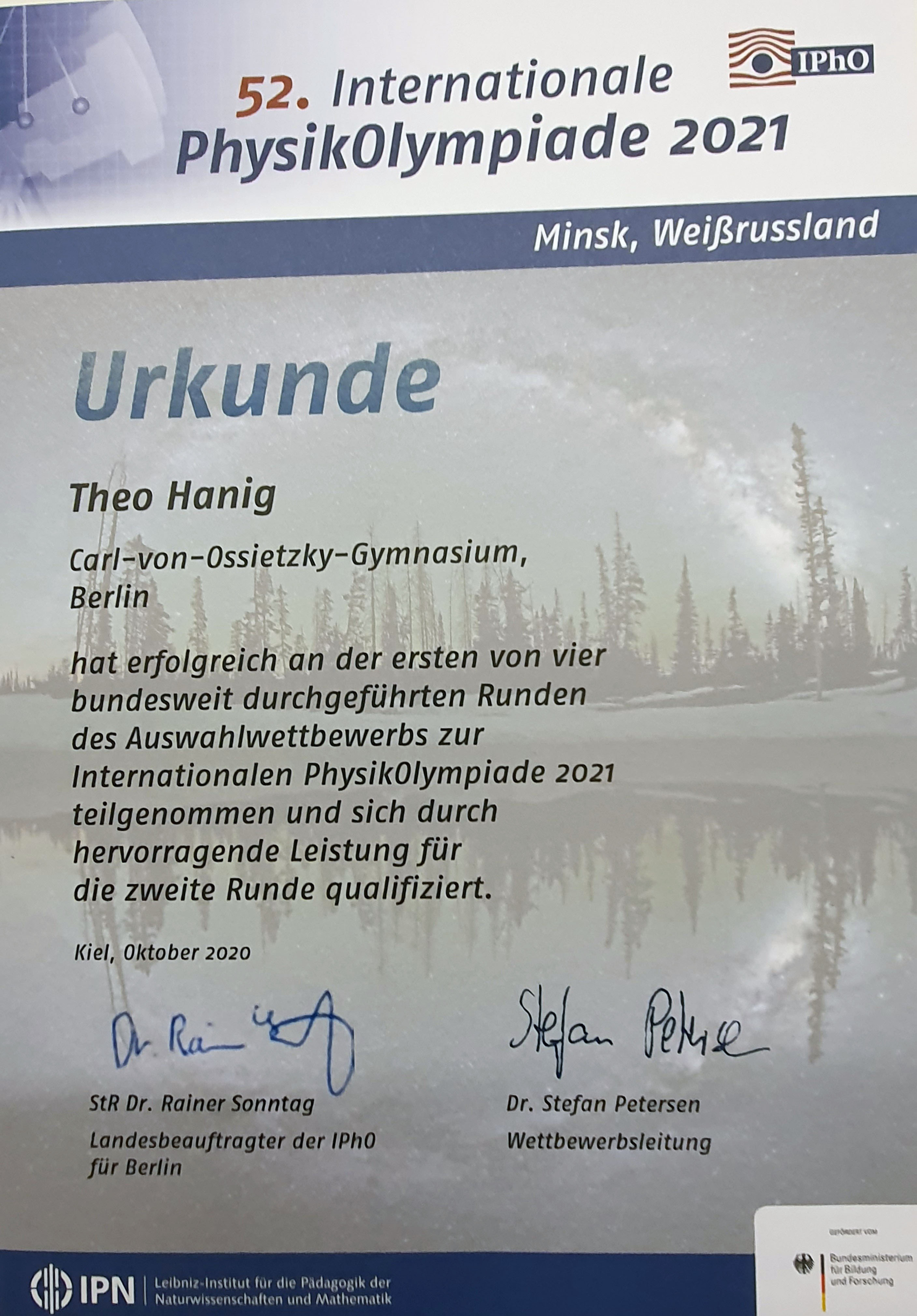 1) Nico (Q1) - Delegierung zum Regionalwettbewerb am 06.02.23