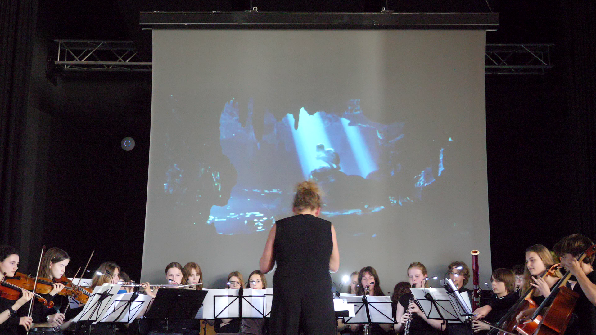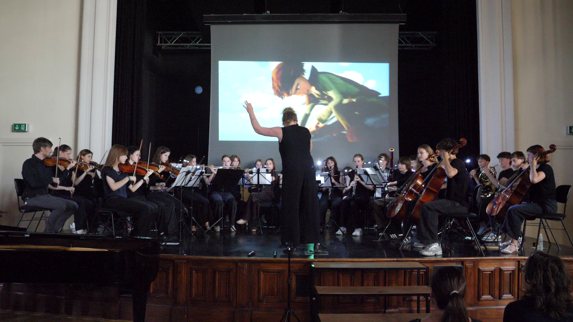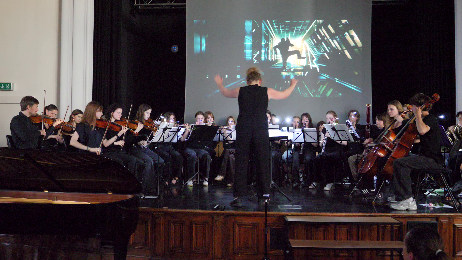 Am Donnerstag, den 19. Juni 2025, verwandelte sich unsere Aula in eine Bühne für großes Kino – musikalisch. Im diesjährigen Filmmusikkonzert konnte das Publikum Arrangements beliebter Soundtracks aus Klassikern über Action bis zu Videospielmusik erleben - interpretiert vom Schulorchester und unterlegt mit eigens für das Konzert von Schüler:innen fantastisch geschnittenen Filmszenen.