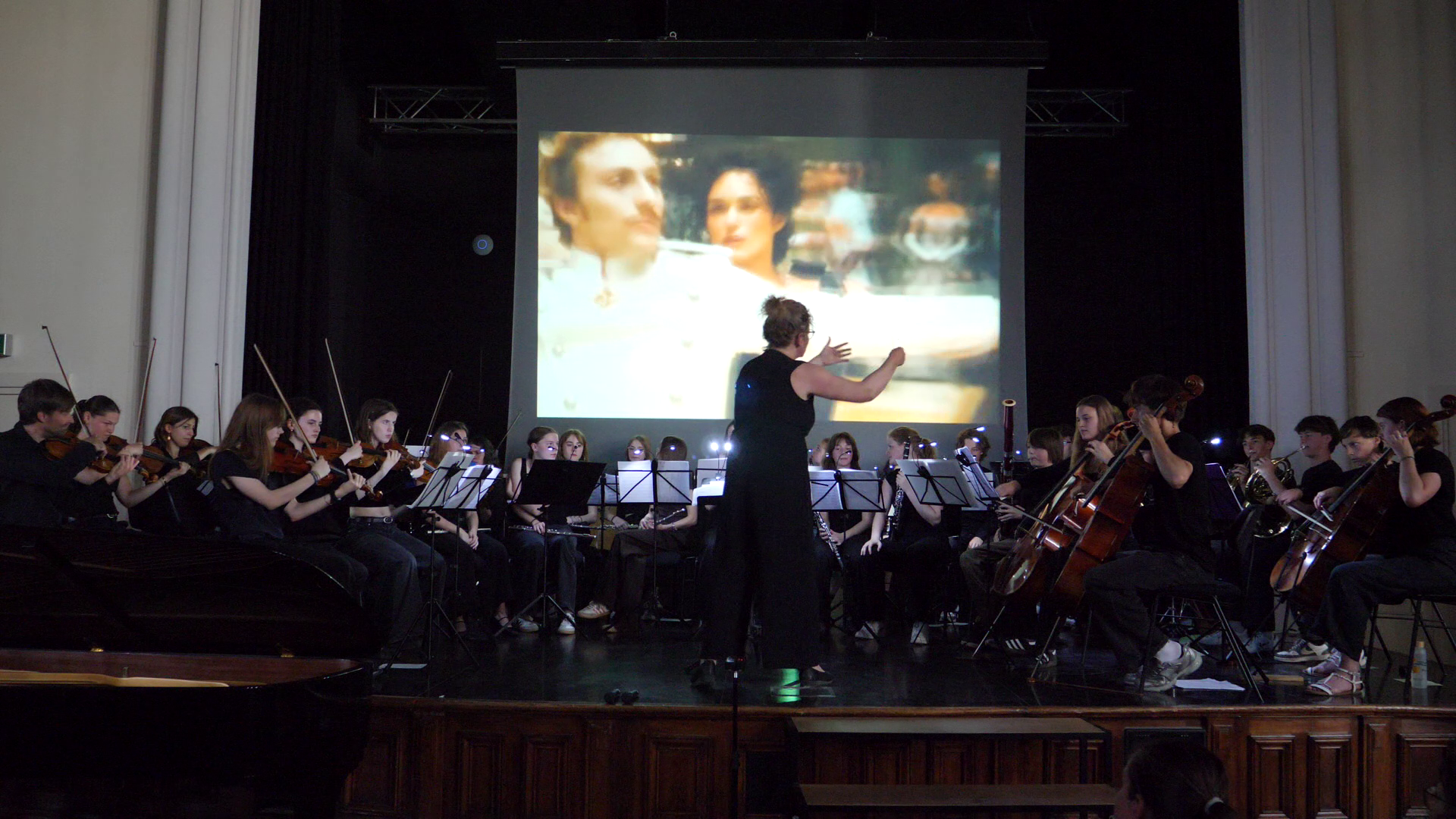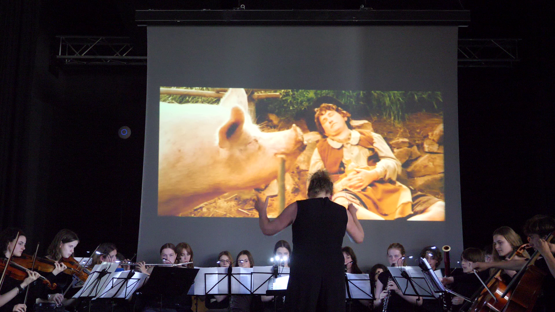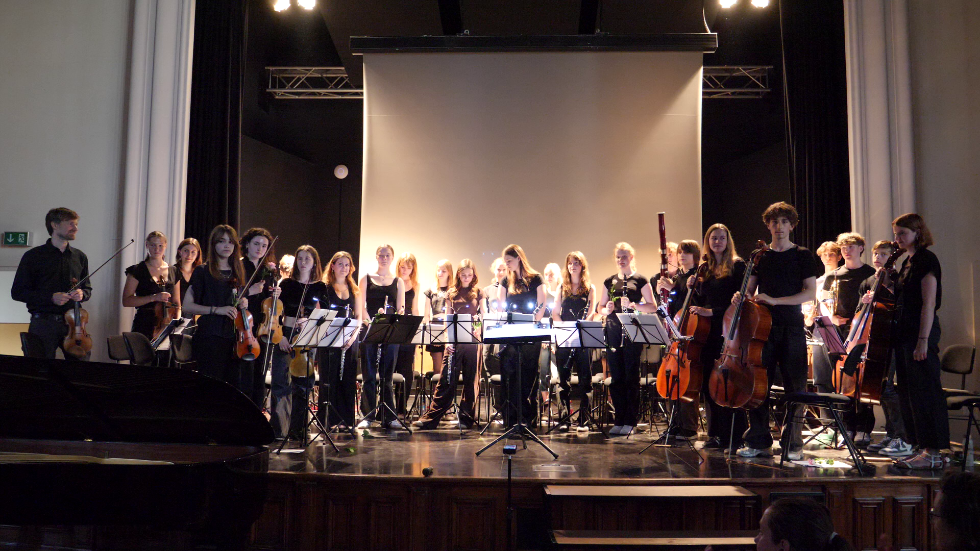 Am Donnerstag, den 19. Juni 2025, verwandelte sich unsere Aula in eine Bühne für großes Kino – musikalisch. Im diesjährigen Filmmusikkonzert konnte das Publikum Arrangements beliebter Soundtracks aus Klassikern über Action bis zu Videospielmusik erleben - interpretiert vom Schulorchester und unterlegt mit eigens für das Konzert von Schüler:innen fantastisch geschnittenen Filmszenen.